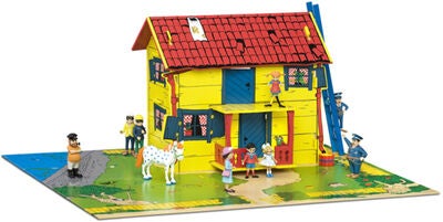 Dukkehuset ”Villa Villekulla” er et skønt dukkehus, som forestiller Pippi Langstrømpes hus, Villa Villekulla. Huset er udstyret med en trappe og en stige, og desuden medfølger en plade med tryk, der forestiller Pippis have. Huset kan derudover indrettes med de medfølgende klistermærker, som bl.a. forestiller gardiner, malerier samt et komfur. Obs! Figurer og møbler købes seperat.