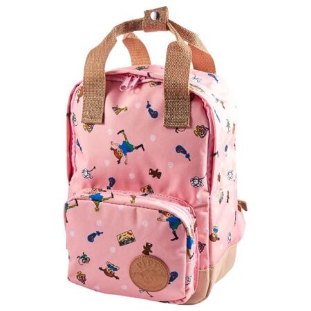 Tag afsted på nye eventyr med Pippi Langstrømpe på ryggen. Rygsækken består af et stort rum og en mindre frontlomme, der begge åbnes og lukkes med lynlås. På siden af tasken er der et lille rum til drikkedunken, mens der i det store rum er plads til både bøger, madkasse, eller legetøj.