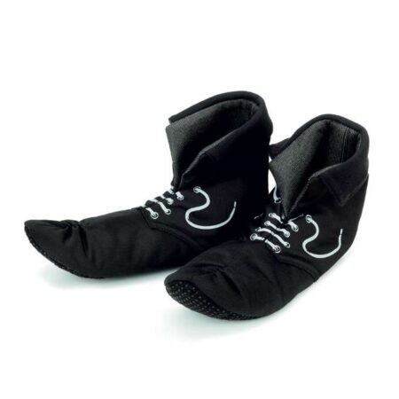 Fuldend kostumet med disse Pippi støvler. Her er Pippis støvler i blød legeversion med rigtig meget plads til at vifte med tæerne. Med trykt snøring og trikot-muffediser er de meget lette at tage af og på – helt uden hjælp. Skridbeskyttelsen på undersiden gør at man trygt kan hoppe rundt og lege i dem uden at glide.