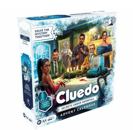 Seks gæster ankommer til Tudor-herregården midt om vinteren og forventer en sprudlende vinterfest, men mødes af en kold velkomst fra værten Sufus Sort, som truer med at afsløre deres hemmeligheder – og ved aftenens slutning er Sort død, og alle er mistænkte. I Cluedo: Secrets Under Snowfall julekalenderen kan familier følge mysteriet over 24 dage, hvor hver låge afslører et nyt puslespil og en del af historien. Løs puslespillet for at finde ud af, hvilken låge der skal åbnes næste gang, og brug de indsamlede ledetråde til at afgøre, HVEM der dræbte Sort, HVOR og med HVAD!