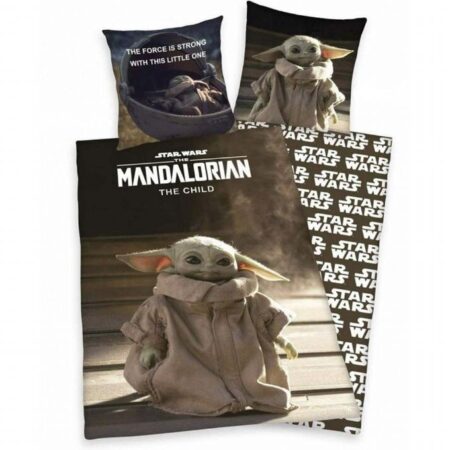 Sejt sengetøj med motiv og tema fra Star Wars The Mandalorian. På sengetøjet er The Child Grogu. Sengetøjet har vendbart design. Sengetøjet er i bomulds materiale med et hovedpudemål på 70×90 cm og passer til en dyne på 140×200 cm.