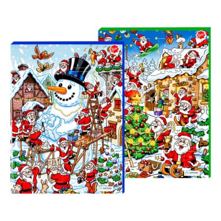 Dette må kaldes den ultimative julekalender, fyldt med alverdens godt og stor nok til at den er delevenlig. 24 låger med lækre fyldte chokoladekugler, skum julemænd, chokoladeplader, nødder og mandler overtrukket med chokolade, marcipan med forskellige smage, lakrids og vingummi overtrukket med chokolade, lakrids og fransk nougat. Julekalenderen særdeles delevenlig.