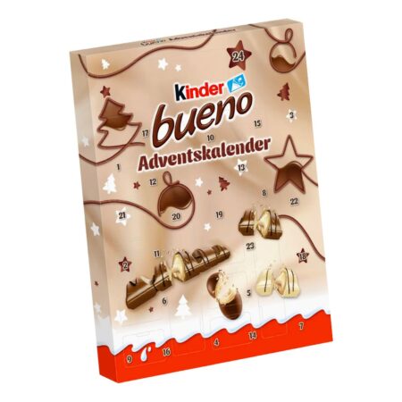 For at gøre ventetiden på julemanden lidt sødere har Kinder skabt en julekalender, der næsten er for fristende til kun at åbne én låge ad gangen. Måske er det klogt at have en ekstra kalender klar – bare for en sikkerheds skyld! Kinder Bueno Julekalender indeholder 24 låger med lækre stykker chokolade fra Kinder i fire forskellige varianter – en perfekt måde at tælle dagene ned til juleaften på.