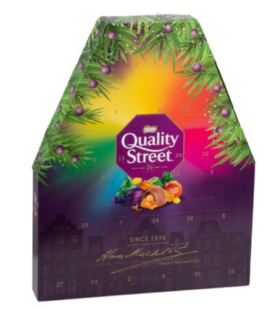 Gør december ekstra lækker med Quality Street Julekalender! Bag de 24 låger gemmer sig skønne praliner, chokoladekarameller og blød fudge i mange uimodståelige smagsvarianter. Hver bid er indpakket i ikonisk farverigt papir og giver en hyggelig, nostalgisk følelse af britisk konfektkultur. En perfekt kalender til chokoladeelskeren, der vil nyde små stunder af sød forkælelse hver dag.