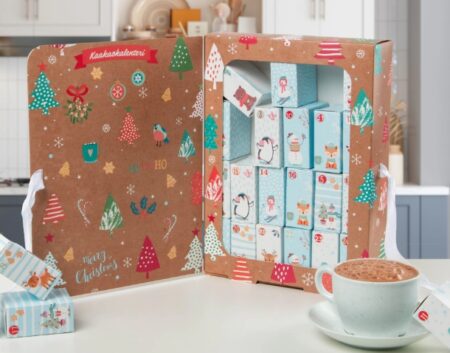 Kalenderen rummer 24 små kasser med chokoladepulver, hvor hver portion på 20 gram kan blandes med 2,5 dl varm mælk. I alt får du 12 forskellige smagsvarianter – ideel for både store og små, der vil nyde et hyggeligt og opvarmende øjeblik i vintermørket.